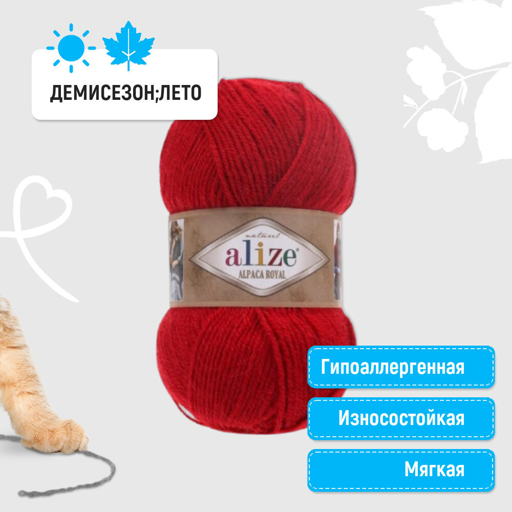 Пряжа для вязания ALIZE 'Cotton gold', 100г, 330м (55% хлопок, 45% акрил), ТУ (56 красный), 5 мотков