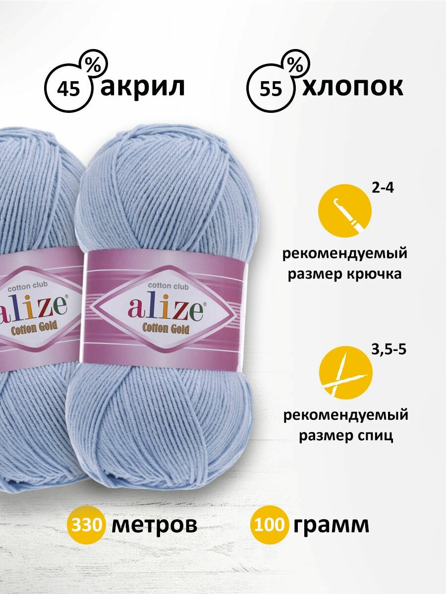 Купить Пряжа для вязания ALIZE 'Cotton gold', 100г, 330м (55% хлопок, 45% акрил), ТУ (40 голубой), 5 мотков