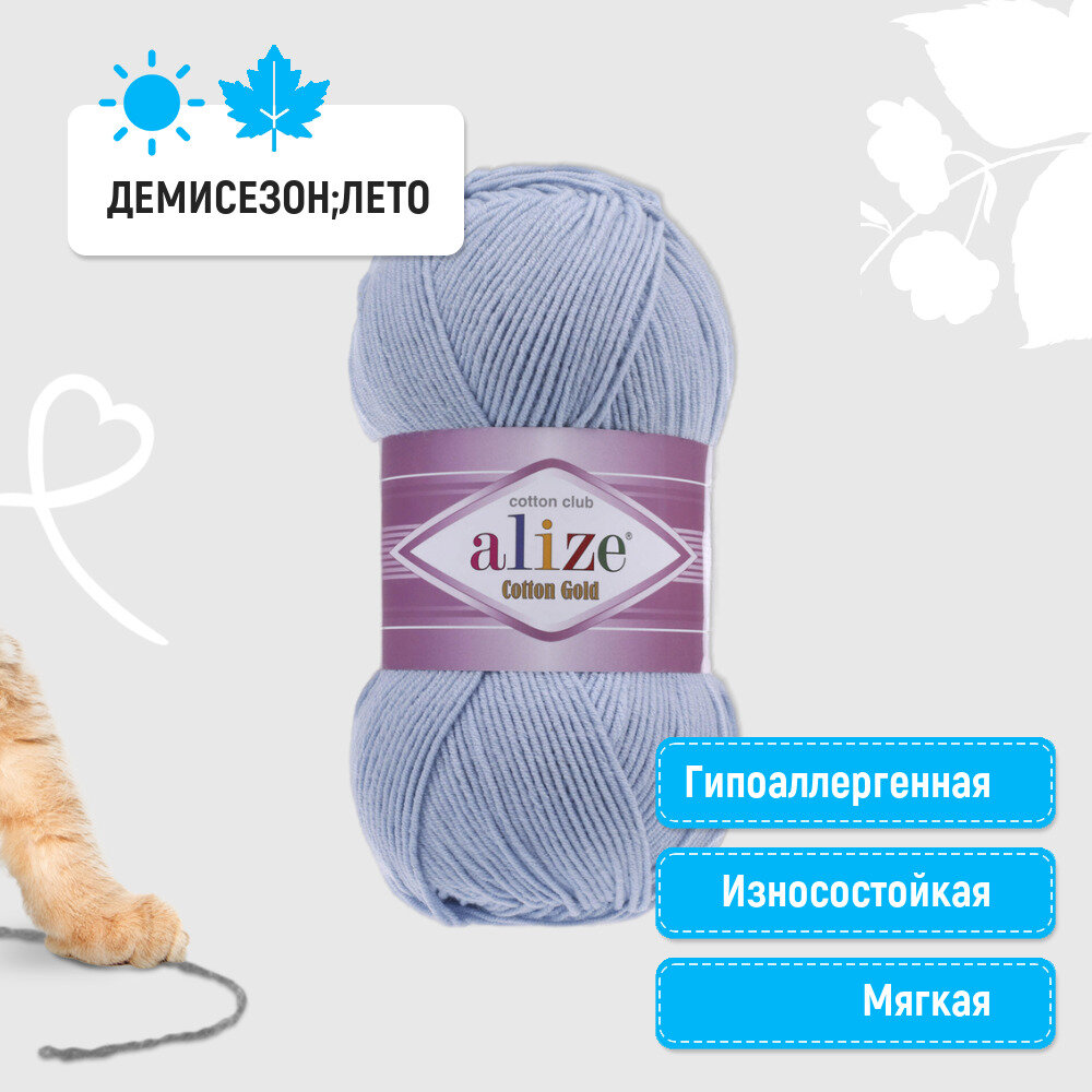 Пряжа Alize Cotton Gold (55% хлопок, 45% акрил) 100 гр, 330 м, 513 кристально-голубой , 1 моток