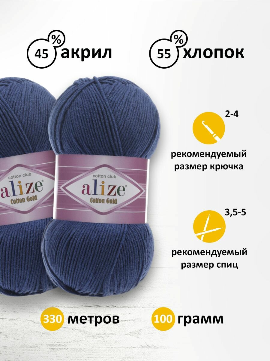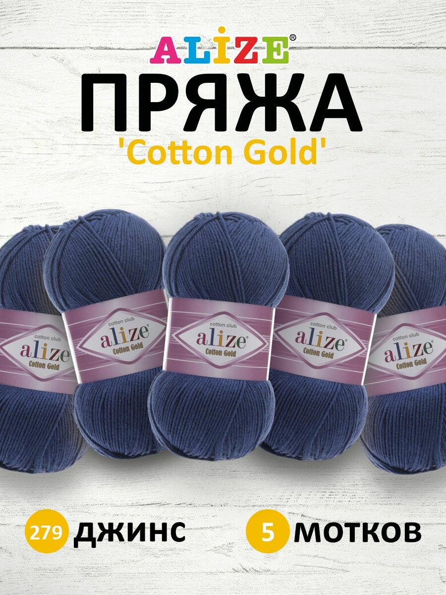 Купить Пряжа для вязания ALIZE 'Cotton gold', 100г, 330м (55% хлопок, 45% акрил), ТУ (279 джинс), 5 мотков