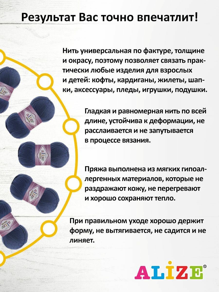 СохранитьПряжа для вязания ALIZE 'Cotton gold', 100г, 330м (55% хлопок, 45% акрил), ТУ (279 джинс), 5 мотков интересное: