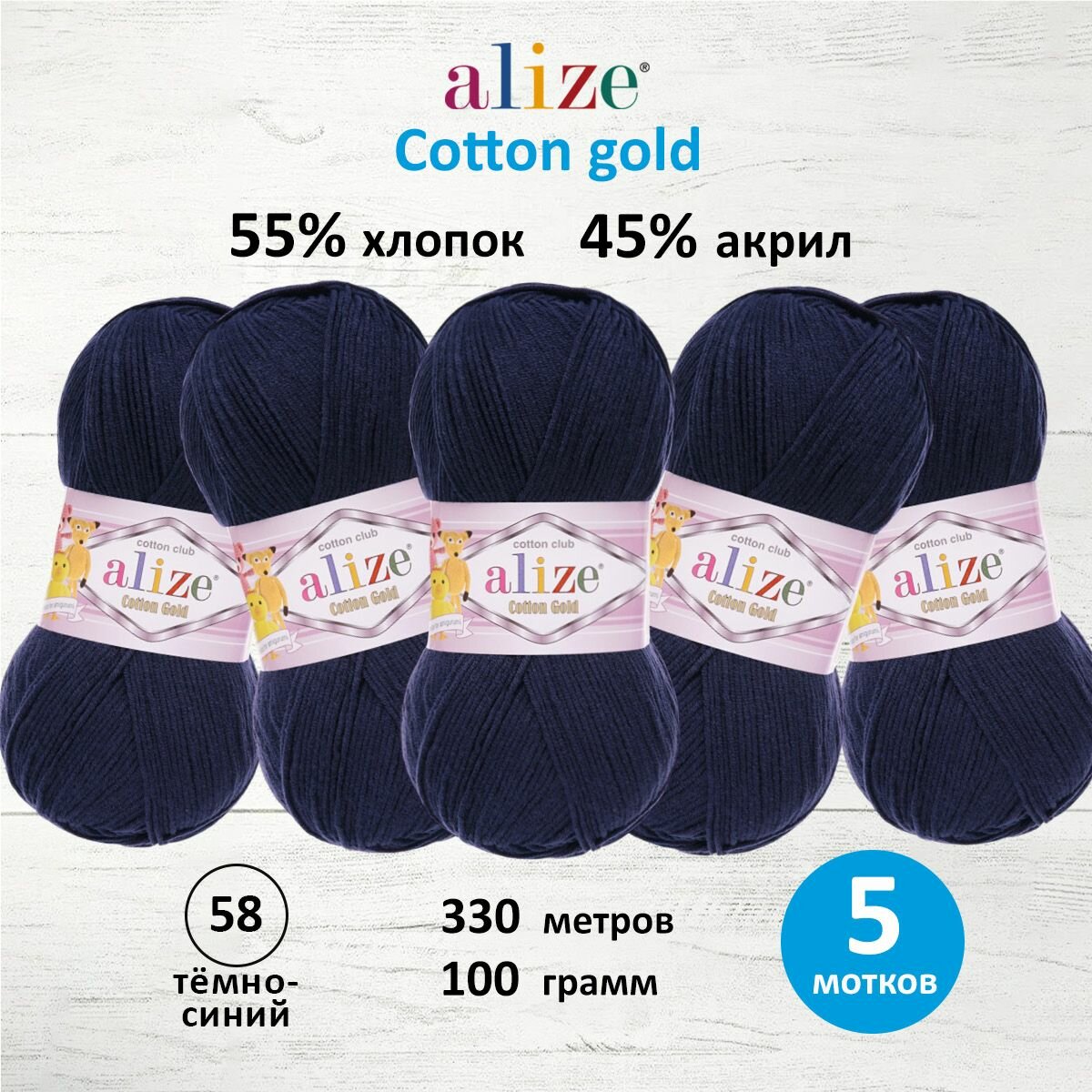 Купить Пряжа Alize Cotton Gold темно-синий (58), 55%хлопок/45%акрил, 330м, 100г, 5шт