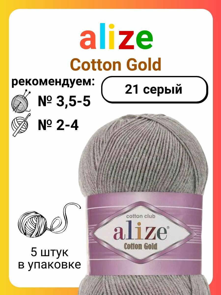 Купить Пряжа для вязания Alize Cotton Gold 21 серый, 100 г, 330 м, 5 штук