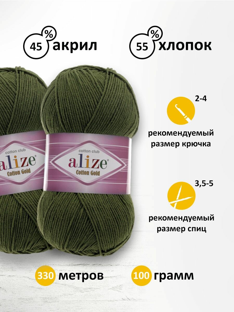 Купить Пряжа для вязания ALIZE 'Cotton gold', 100г, 330м (55% хлопок, 45% акрил), ТУ (29 хаки), 5 мотков