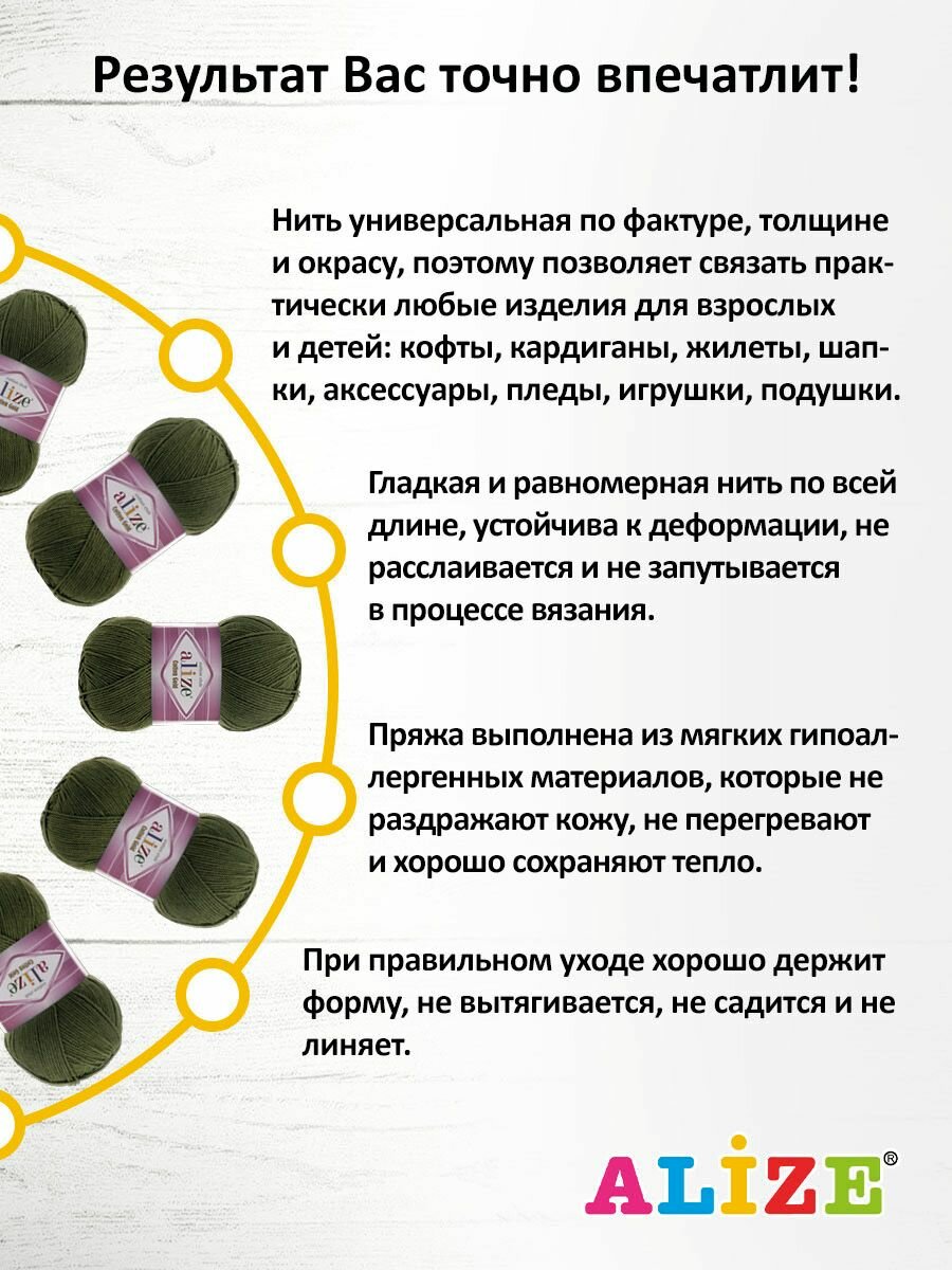 СохранитьПряжа для вязания ALIZE 'Cotton gold', 100г, 330м (55% хлопок, 45% акрил), ТУ (29 хаки), 5 мотков интересное: