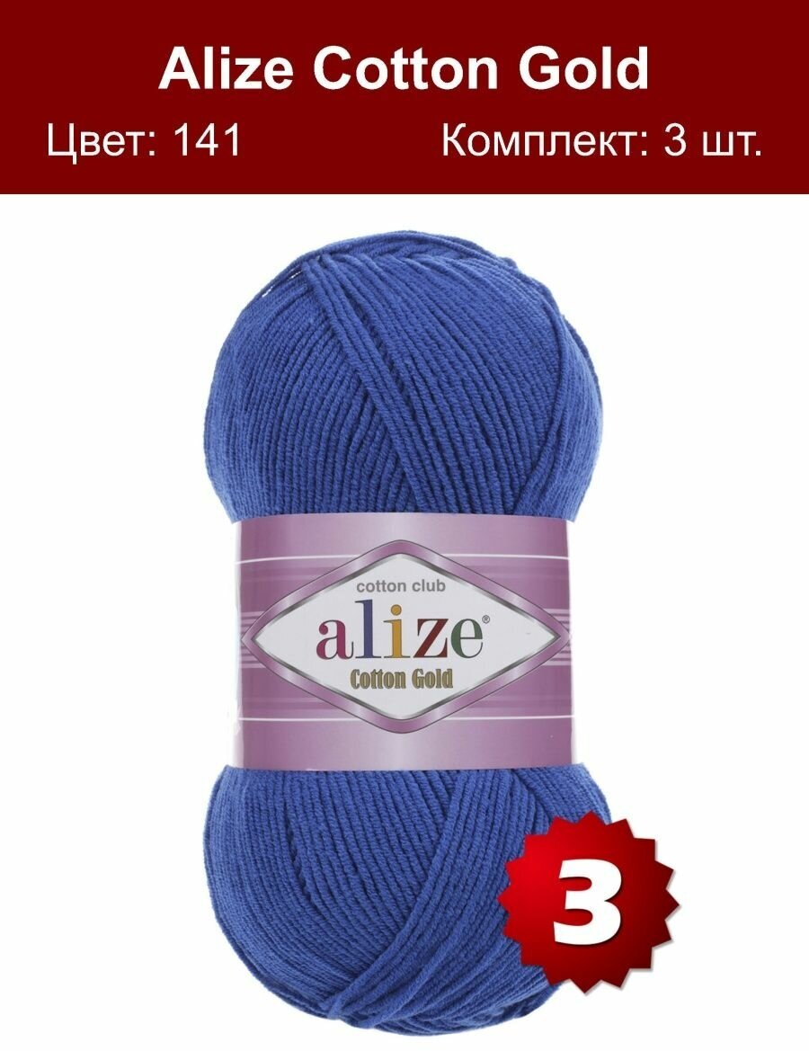 Купить Пряжа Alize Cotton Gold (Ализе Коттон Голд) - 3 мотка 141 василек 55% хлопок, 45% акрил 330м/100г