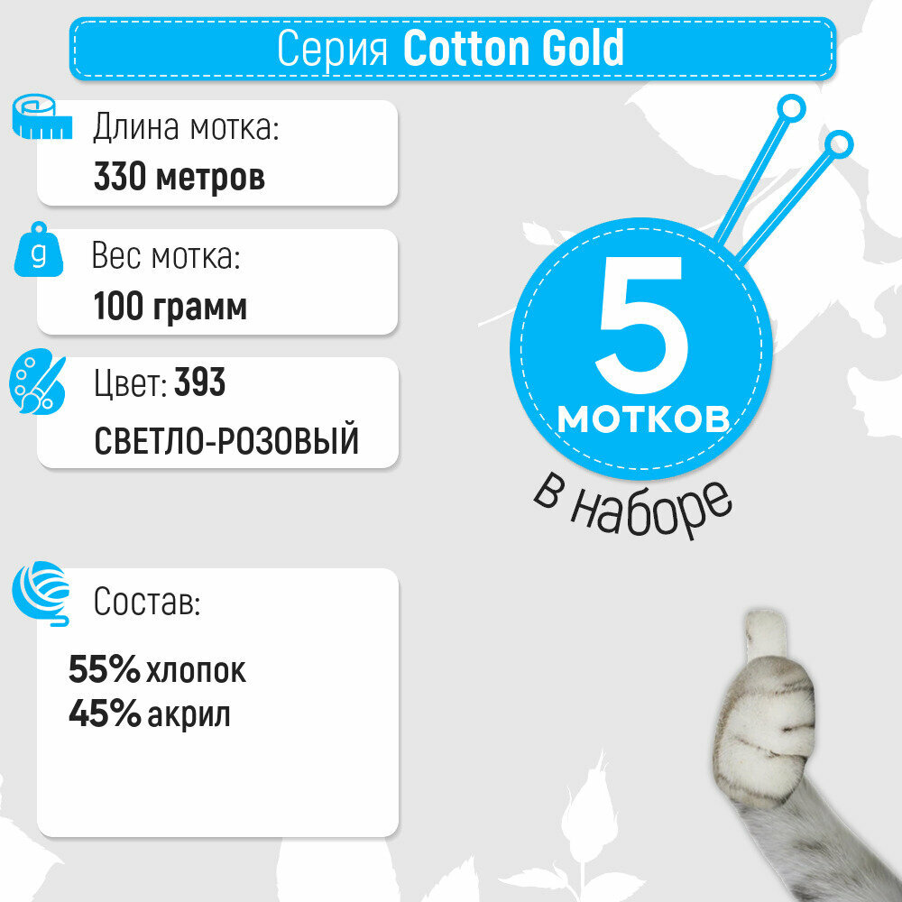 Пряжа "Alize Cotton Gold", цвет: 393 - Розовый светлый, 3 шт., Хлопок 55%, Акрил 45%, 100 гр. 330 м.