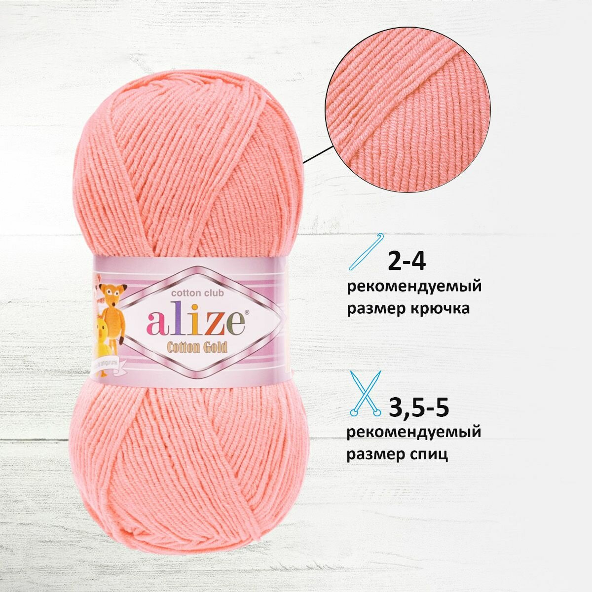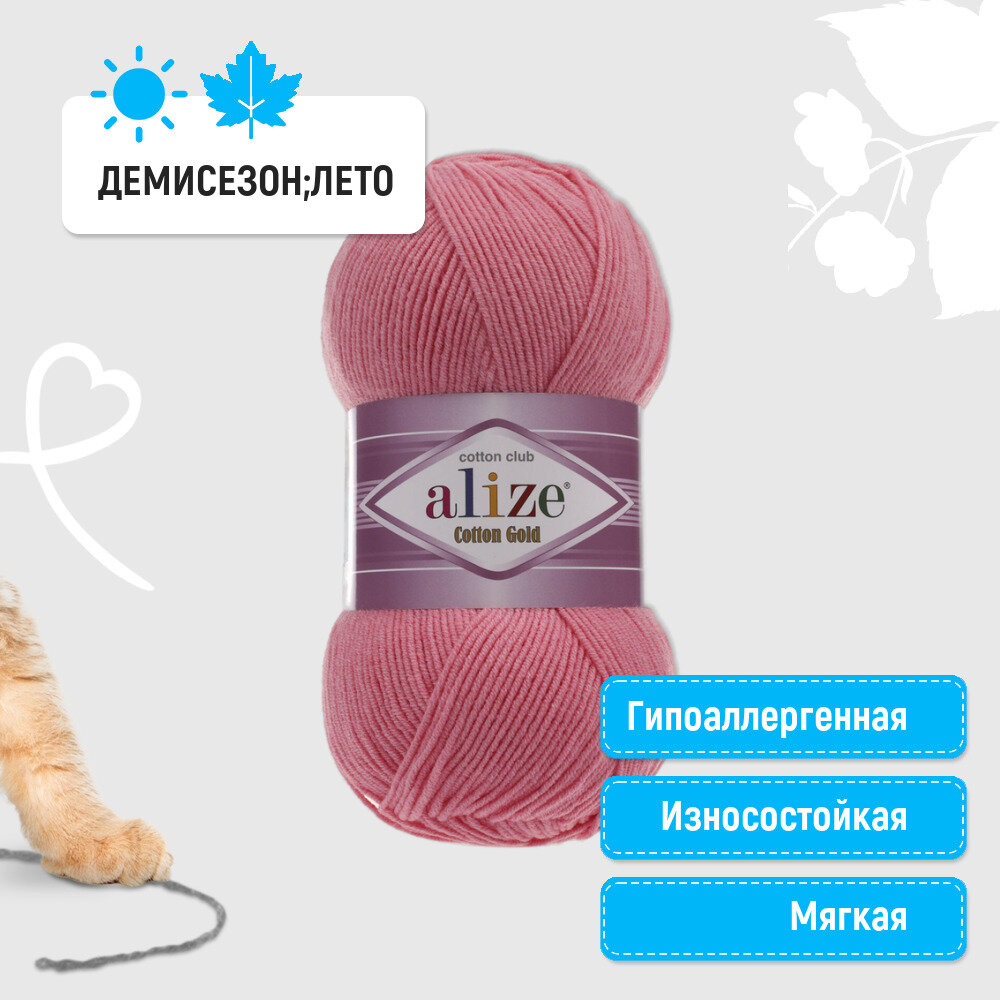 Пряжа "Alize Cotton Gold", цвет: 265 - Коралл, 1 шт, Хлопок 55%, Акрил 45%, 100 гр. 330 м.