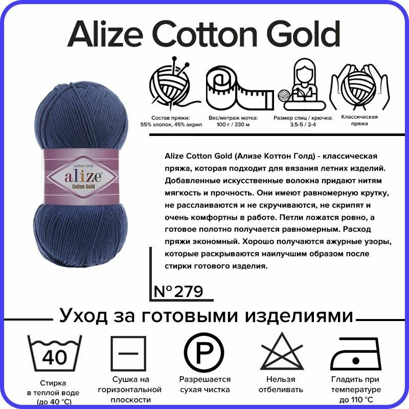 Купить Пряжа Alize Cotton Gold джинс (279), 55%хлопок/45%акрил, 330м, 100г, 1шт