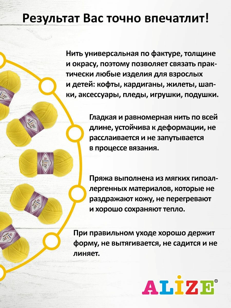 СохранитьПряжа для вязания Alize Cotton Gold 110 желтый, 100 г, 330 м, 5 штук интересное: