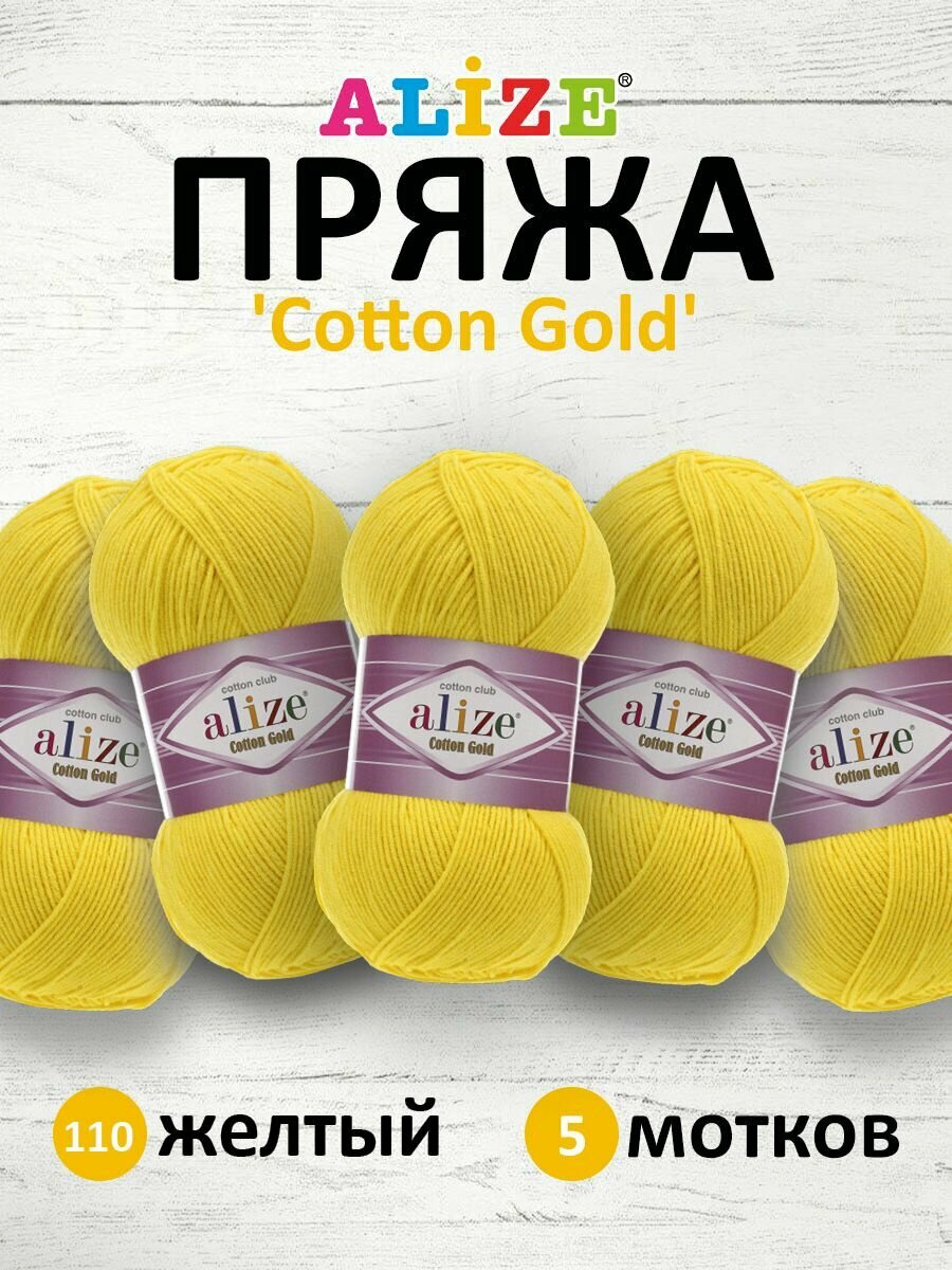 Купить Пряжа для вязания Alize Cotton Gold 110 желтый, 100 г, 330 м, 5 штук