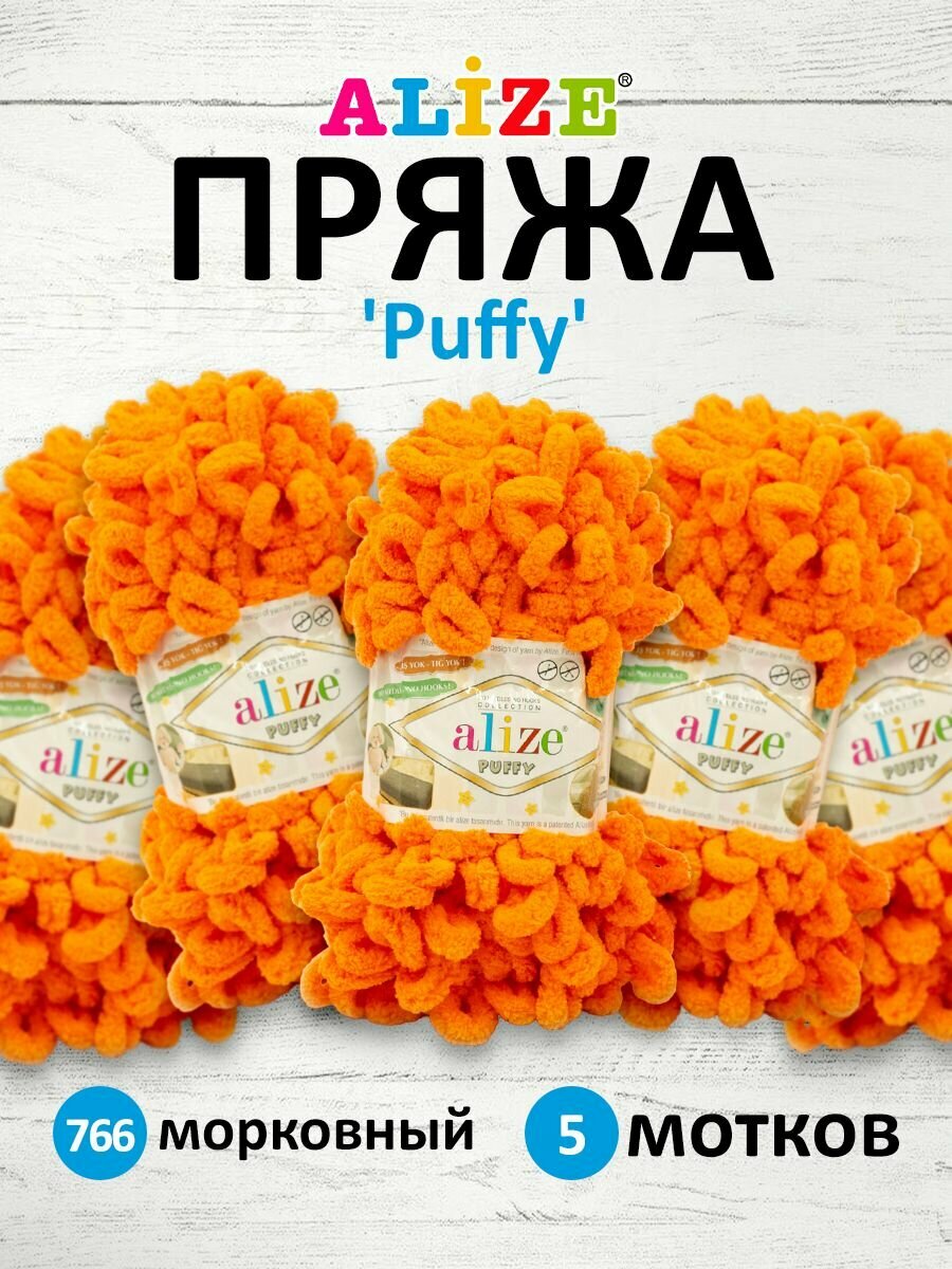 Купить Пряжа для вязания Alize 'Puffy', 100г, 9м (100% микрополиэстер) (766 морковный), 5 мотков