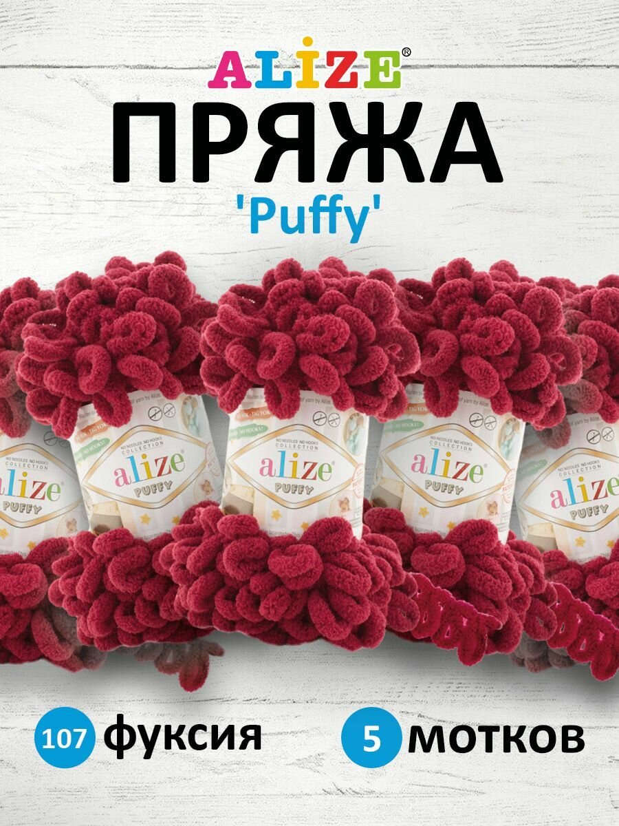 Купить Пряжа для вязания Alize 'Puffy', 100г, 9м (100% микрополиэстер) (107 фуксия), 5 мотков