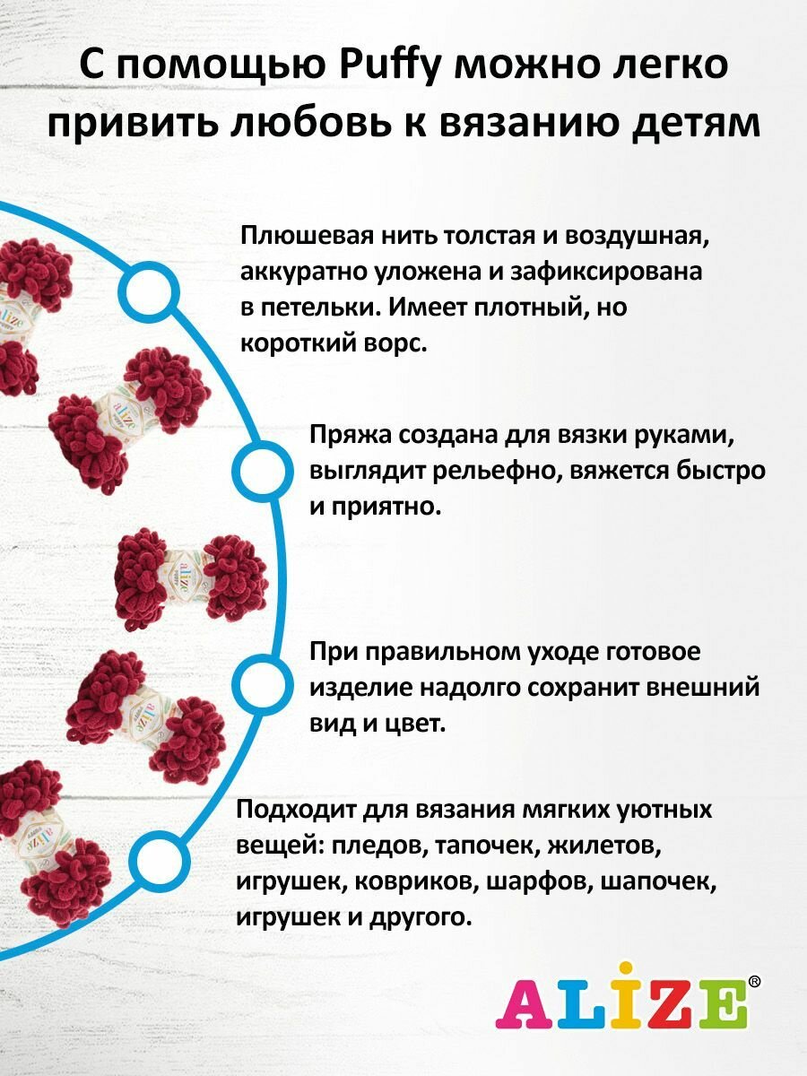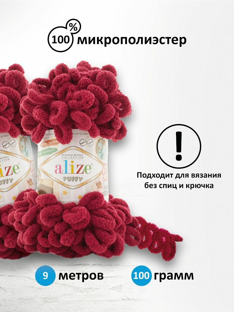 Пряжа ALIZE "Puffy", 100 г 9 м, 100% микрополиэстер, 421 гранатовый, 5 шт