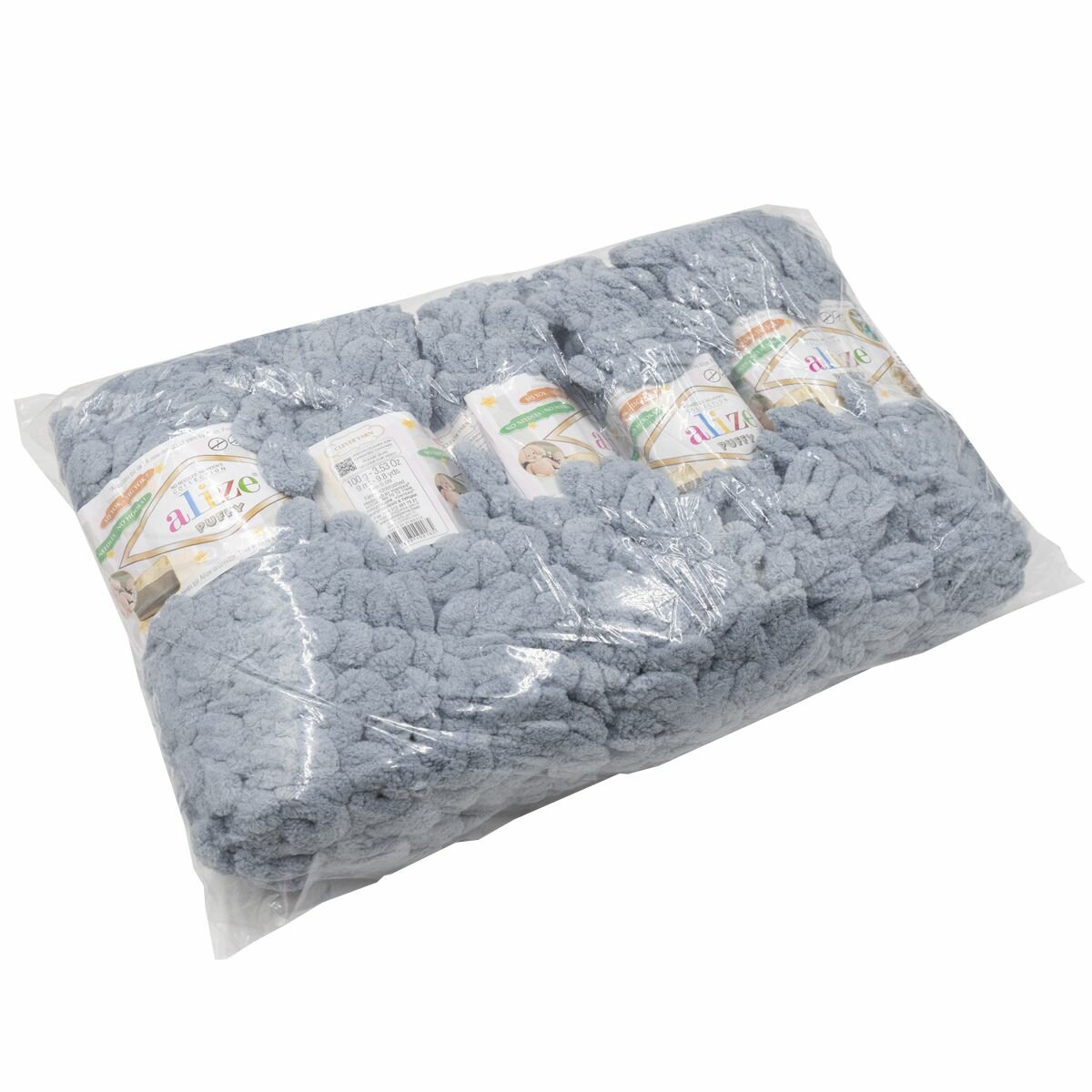 Пряжа плюшевая Alize Puffy (Ализе Пуффи) - 5 мотков 416 серый для вязания руками, гипоаллергенная, большие петли (4см), 9м/100г