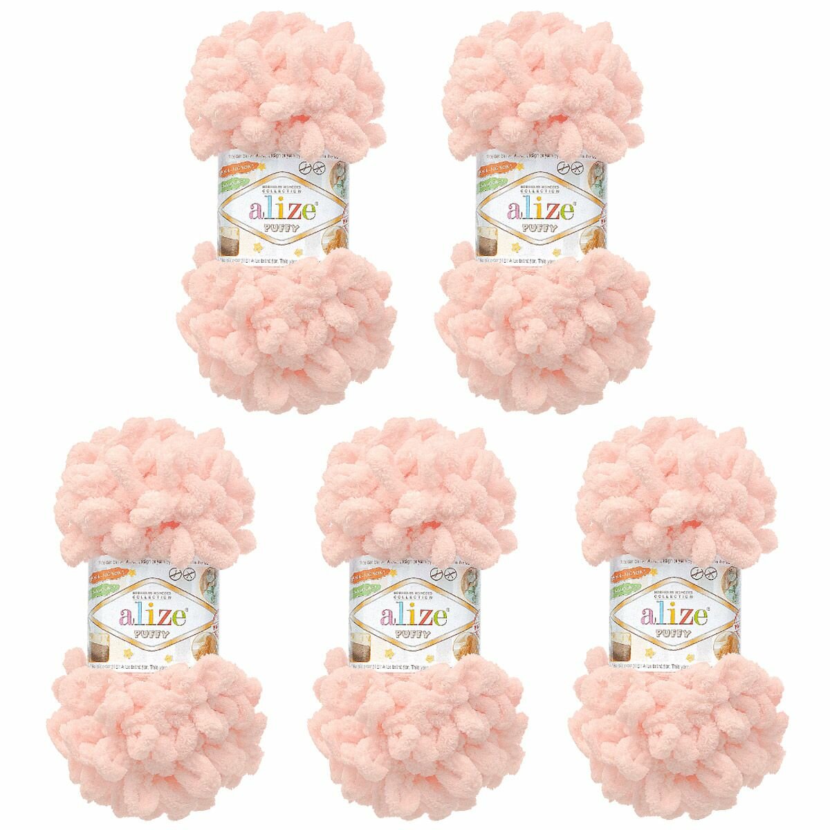 Пряжа для вязания Alize Puffy 185 пастельно-розовый, 100 г, 9,5 м, 5 штук