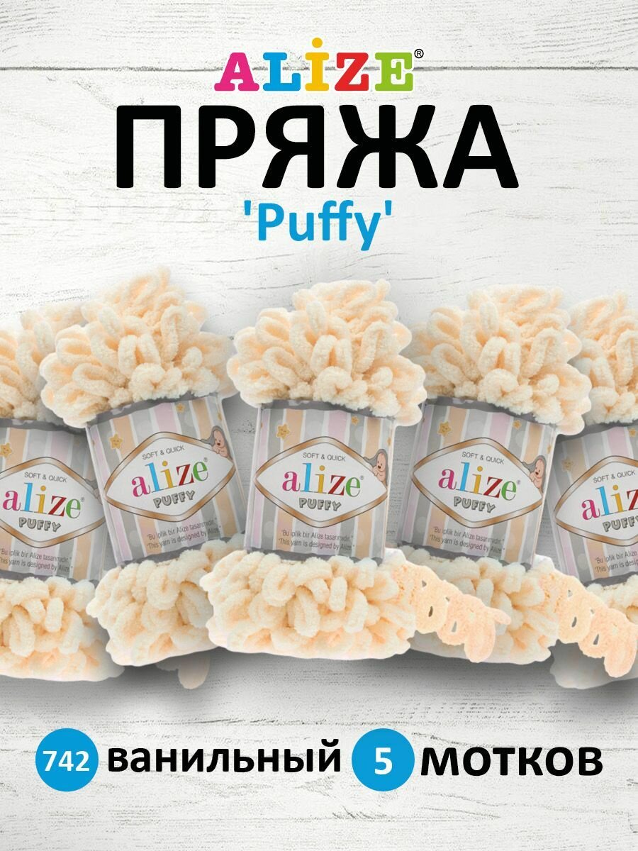 Пряжа для вязания ALIZE Puffy Ализе Пуффи: 742 (ванильный), 3 шт 9 м 100 г, 100% микрополиэстер, большие петли