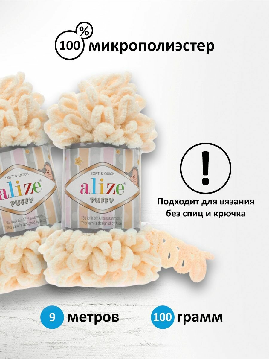 Пряжа для вязания ALIZE Puffy Ализе Пуффи: 262 (бежевый), 3 шт 9 м 100 г, 100% микрополиэстер, большие петли