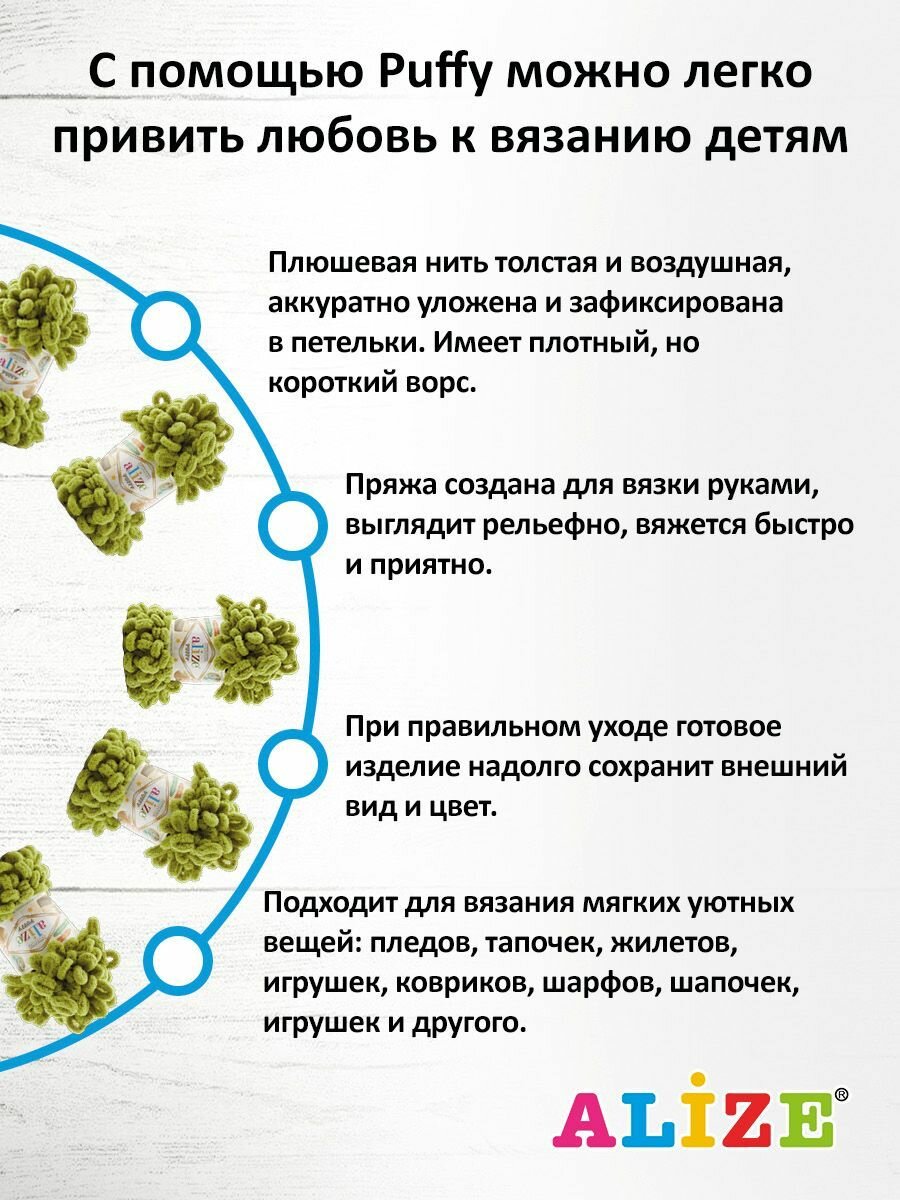 СохранитьПряжа для вязания Alize 'Puffy', 100г, 9м (100% микрополиэстер) (11 фисташково-зелёный), 5 мотков интересное: