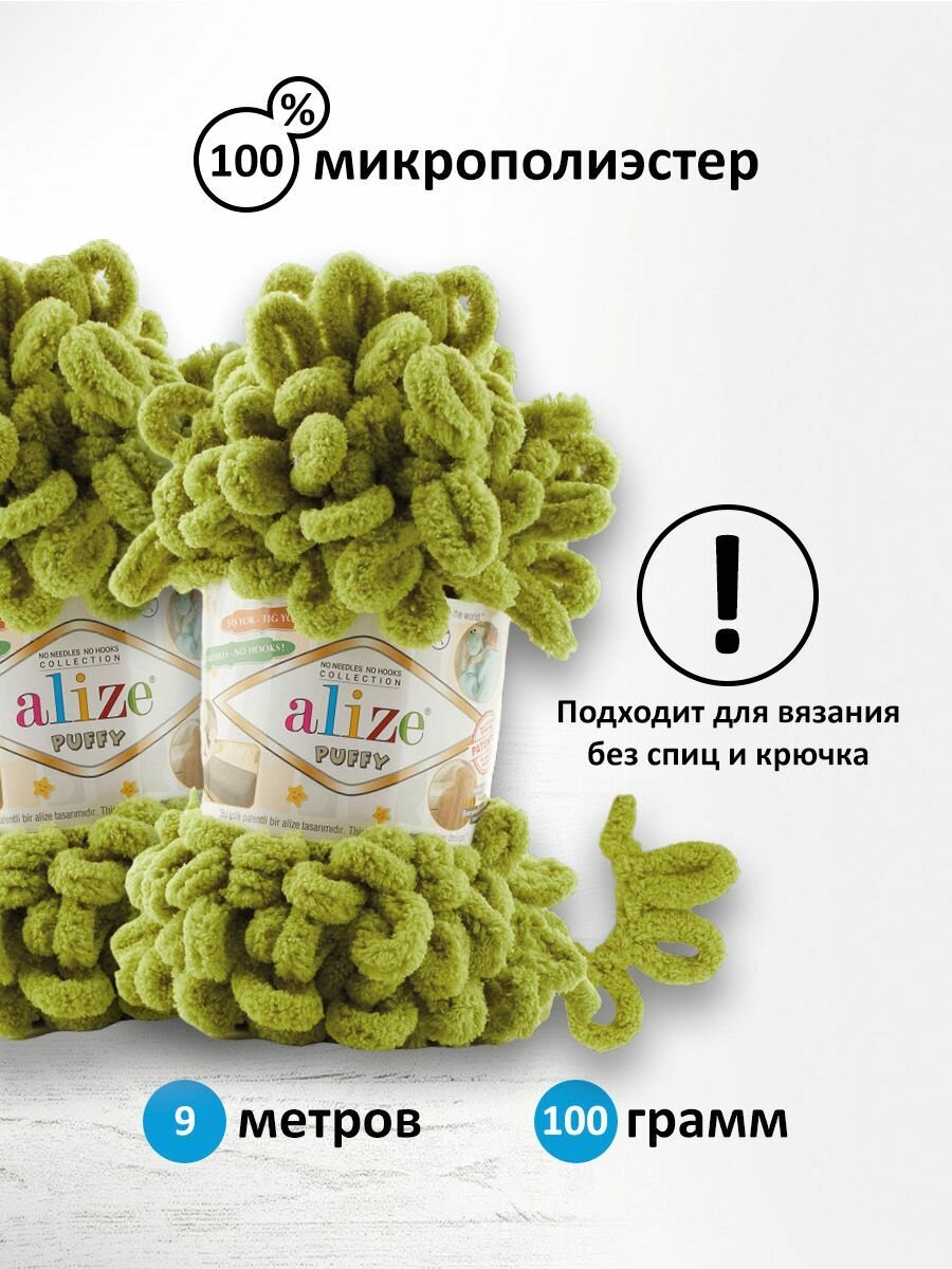 Купить Пряжа для вязания Alize 'Puffy', 100г, 9м (100% микрополиэстер) (11 фисташково-зелёный), 5 мотков