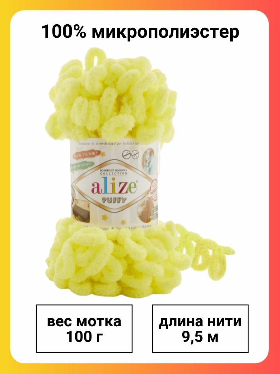 Пряжа для вязания ALIZE Puffy Ализе Пуффи: 216 (желтый) / 3 шт / 9 м / 100 г / 100% микрополиэстер / большие петли