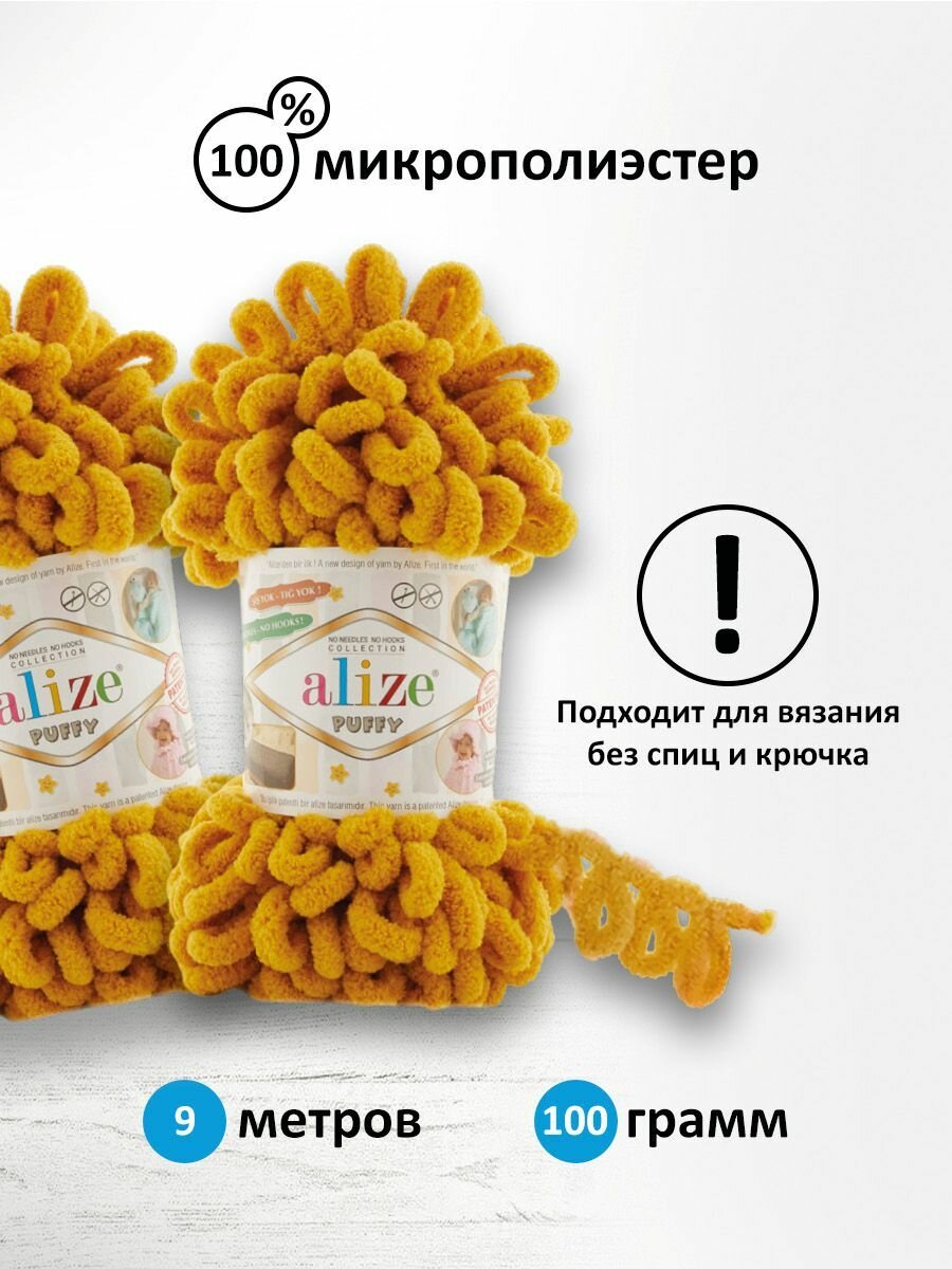 Пряжа для вязания ALIZE Puffy Ализе Пуффи: 216 (желтый) / 3 шт / 9 м / 100 г / 100% микрополиэстер / большие петли