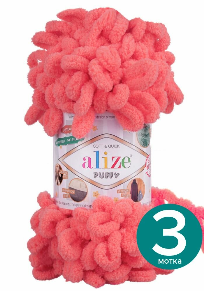 Купить Пряжа Alize Puffy коралловый (619), 100%микрополиэстер, 9м, 100г, 3шт