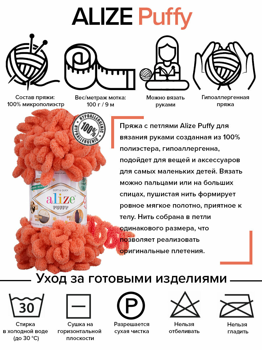 СохранитьПряжа Alize Puffy коралловый (619), 100%микрополиэстер, 9м, 100г, 3шт интересное:
