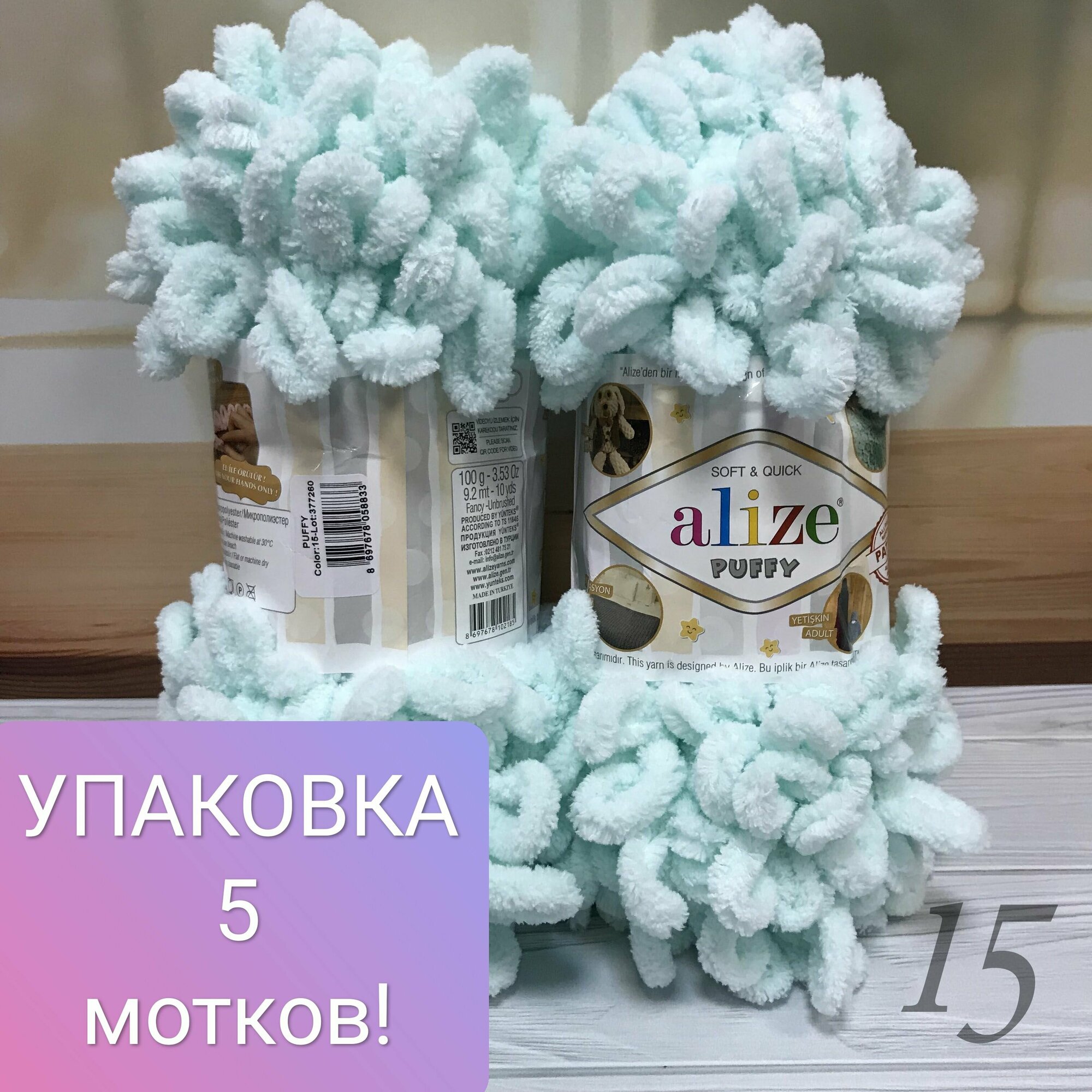 Пряжа Puffy (Alize), мята - 15, 100% микрополиэстер, 5 мотков, 100 г, 9.5 м.
