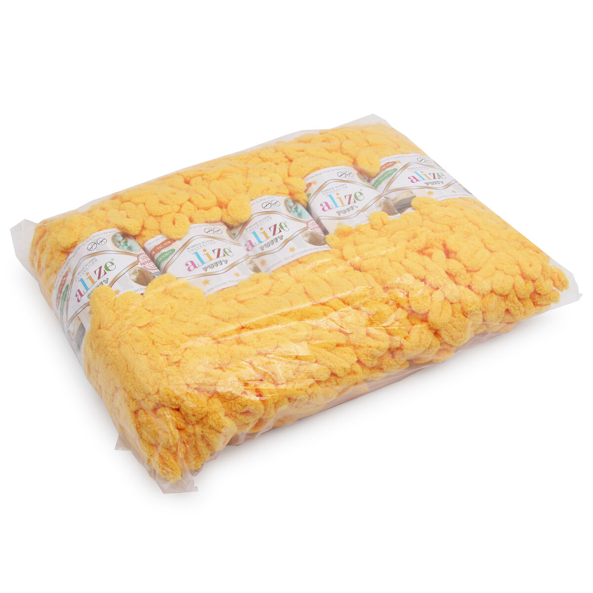 Купить Пряжа для вязания Alize Puffy 216 желтый, 100 г, 9,5 м, 5 штук