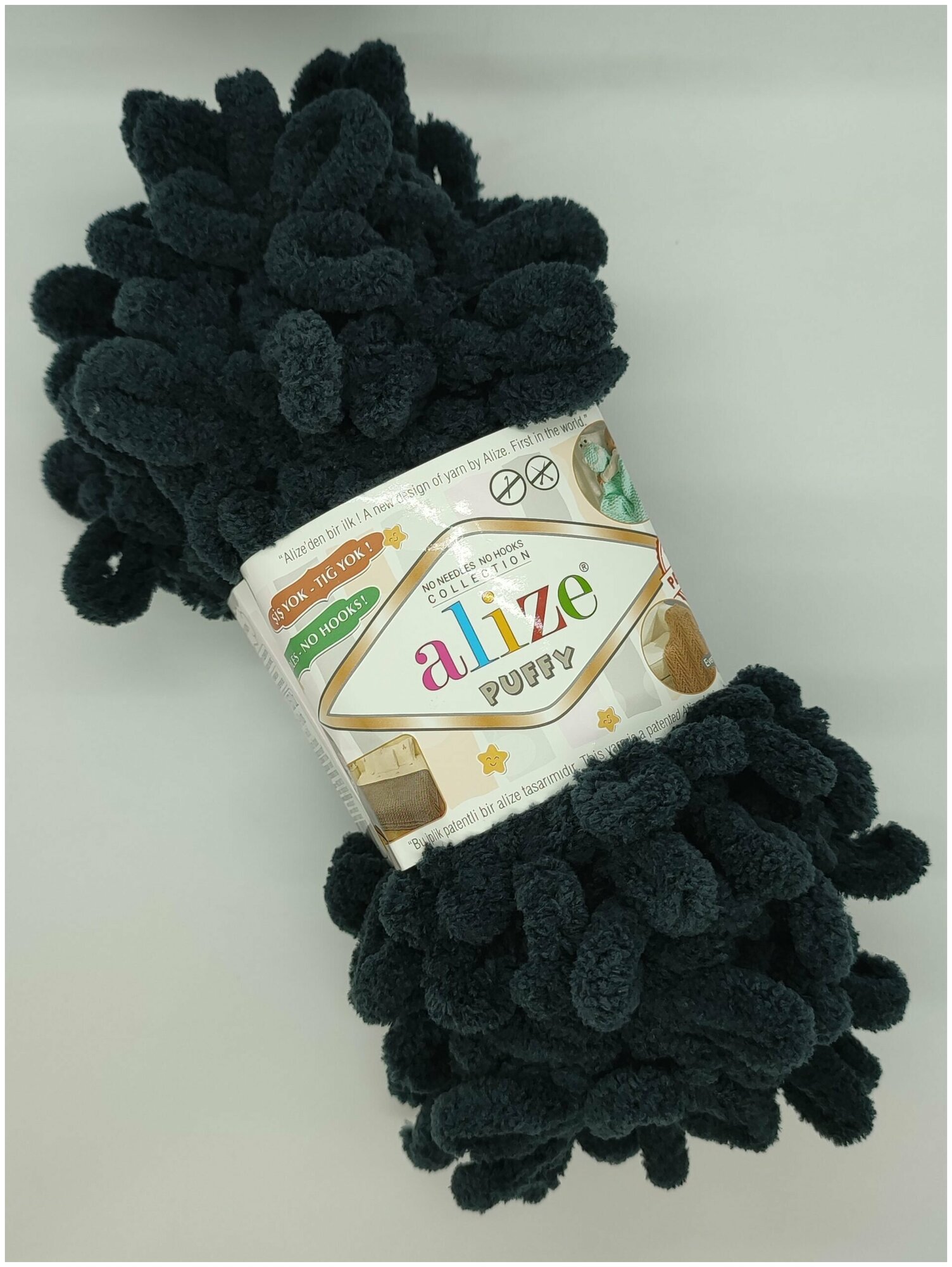 Пряжа плюшевая Alize Puffy (Ализе Пуффи) - 5 мотков 646 петроль для вязания руками, гипоаллергенная, большие петли (4см), 9м/100г