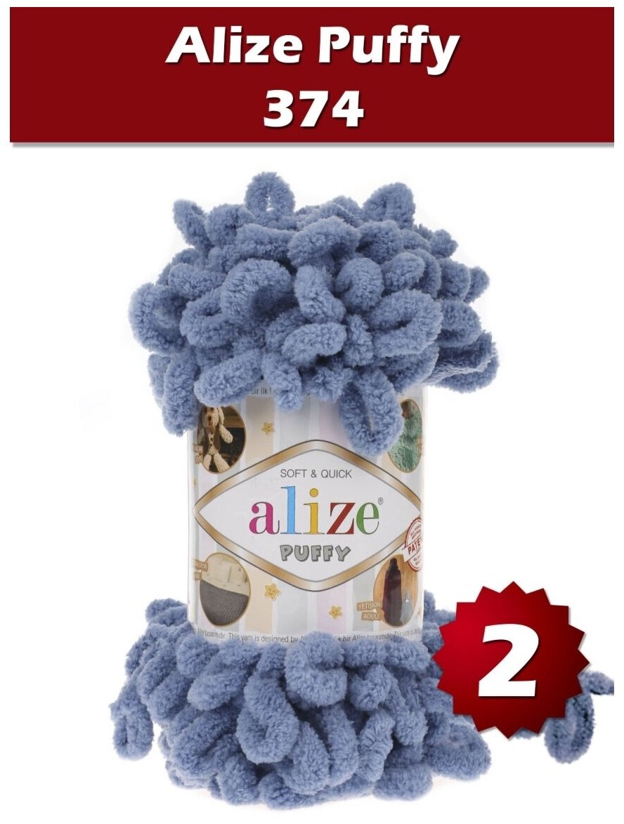 Купить Пряжа Alize Puffy серо-голубой (374), 100%микрополиэстер, 9м, 100г, 2шт