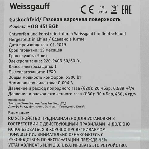 СохранитьГазовая панель Weissgauff HGG 451 BGh интересное: