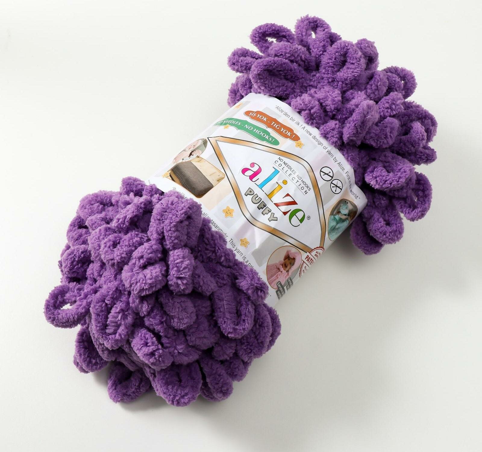 Пряжа плюшевая Alize Puffy (Ализе Пуффи) - 1 моток 111 сливовый для вязания руками, гипоаллергенная, большие петли (4см), 9м/100г