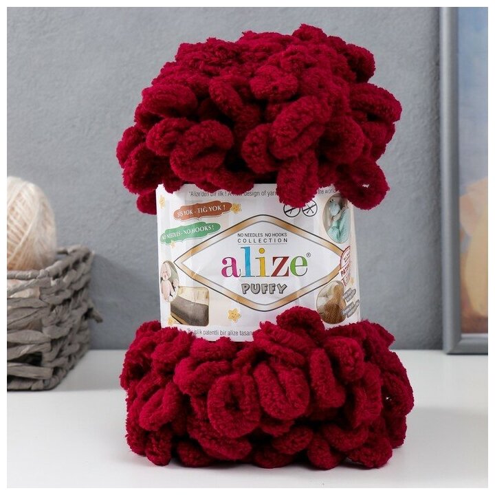 Пряжа ALIZE "Puffy", 100 г 9 м, 100% микрополиэстер, 421 гранатовый, 5 шт