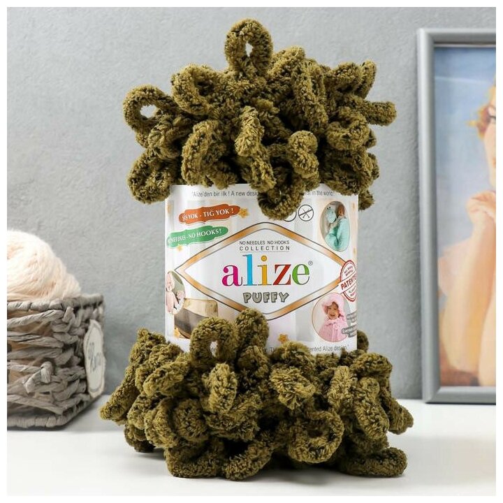 Купить Пряжа Alize Puffy 100г, 9,2м (Ализе Пуффи) цвет 719 крокодил (хаки с крапинкой), 1 шт