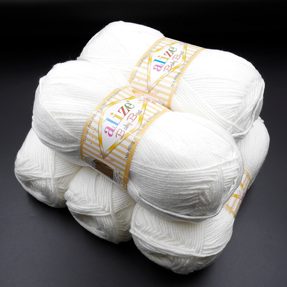 Пряжа BABY BEST (Alize), белый - 55, 10% бамбук, 90% акрил, 5 мотков, 100 г, 240 м.
