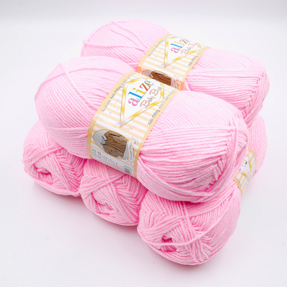 Пряжа для вязания ALIZE 'Baby Best', 100г, 240м (10% бамбук, 90% акрил) Антипиллинг (185 светло-розовый), 5 мотков