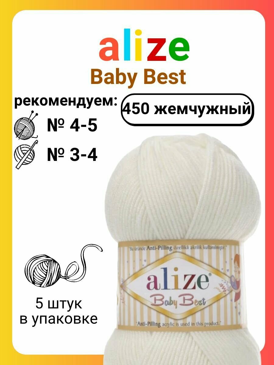 Пряжа Alize Baby best жемчужный (450), 90%акрил/10%бамбук, 240м, 100г, 5шт