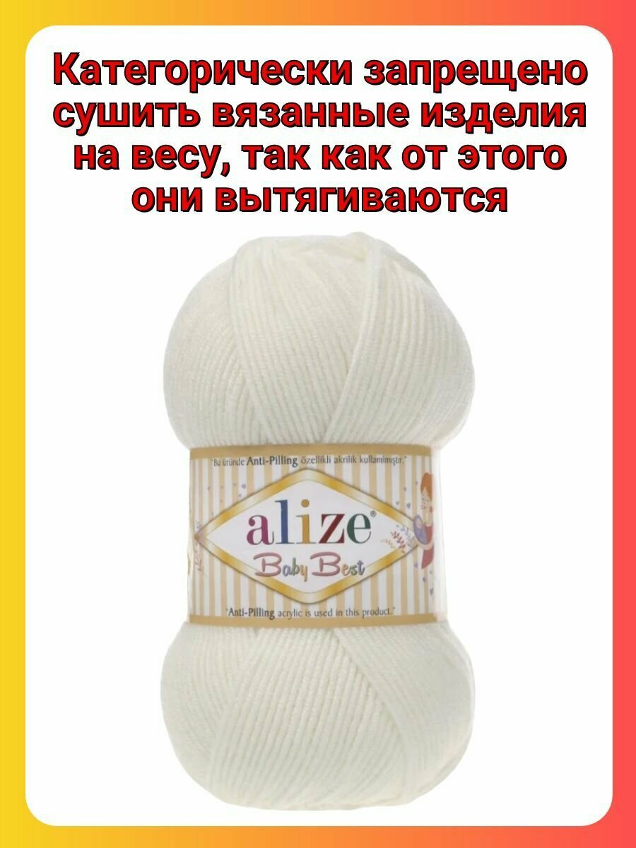 Пряжа Alize Baby best молочный (62), 90%акрил/10%бамбук, 240м, 100г, 5шт