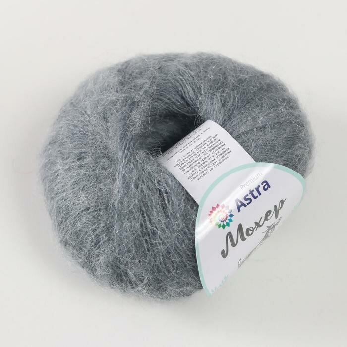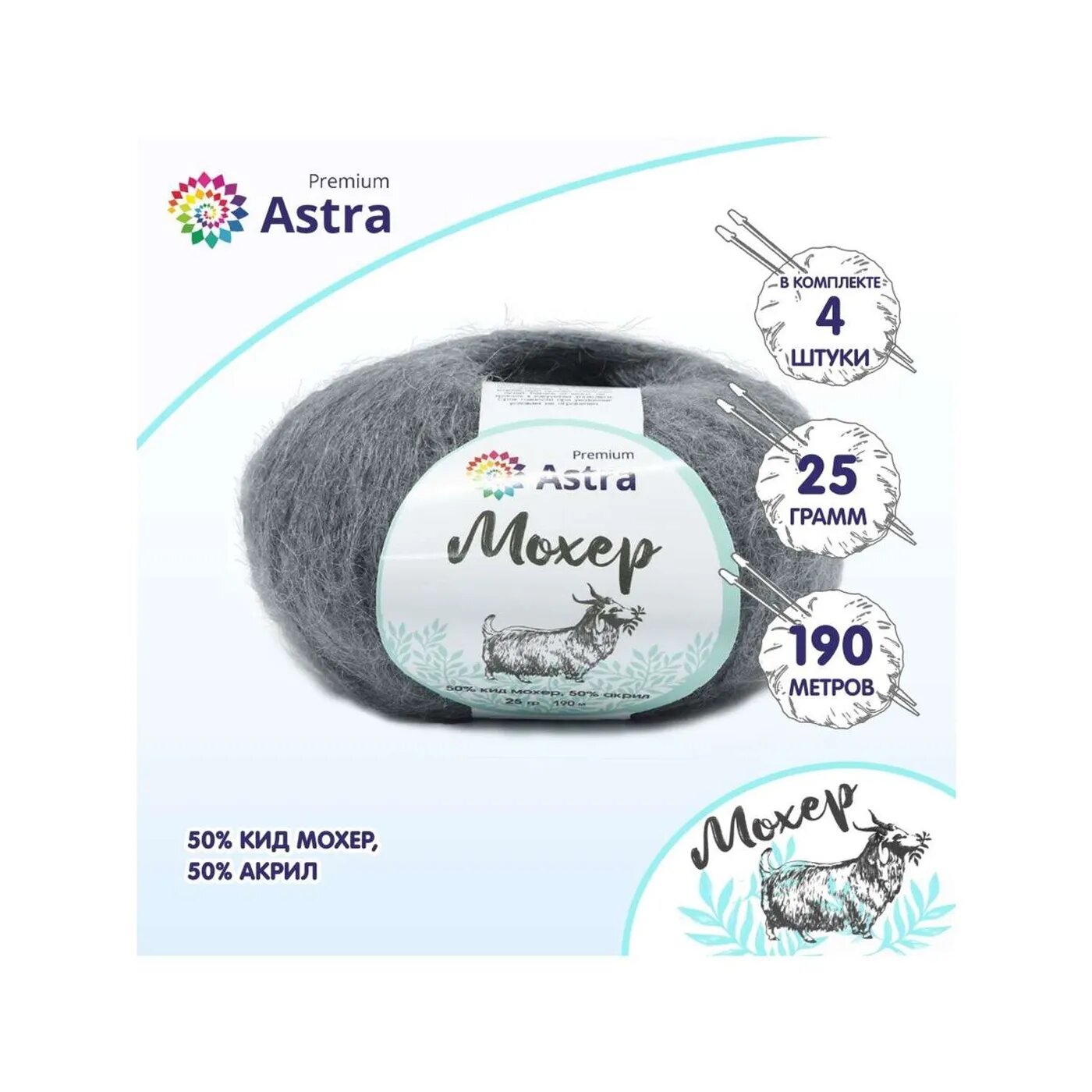 Пряжа для вязания Astra Premium 'Мохер' (Mohair), 25г, 190м (50% кид мохер, 50% акрил) (21 дымчато-серый), 4 мотка