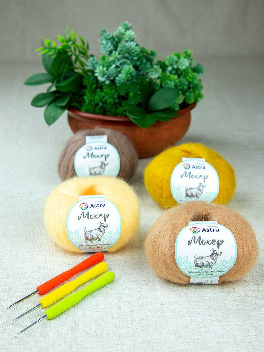 Пряжа для вязания Astra Premium 'Мохер' 25г, 190м (50% кид мохер, 50% акрил) (02 лимонный), 4 мотка