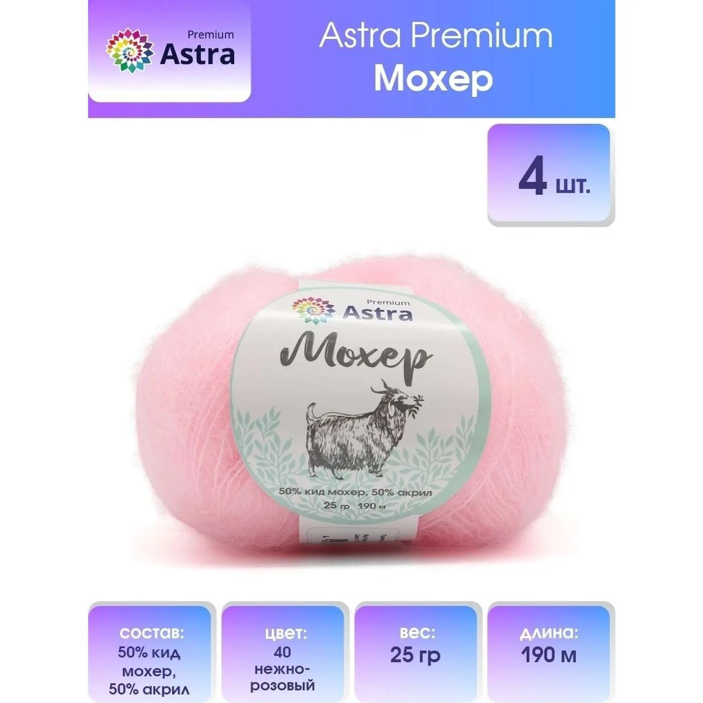 Пряжа для вязания Astra Premium 'Мохер' 25г, 190м (50% кид мохер, 50% акрил) (40 нежно-розовый), 4 мотка