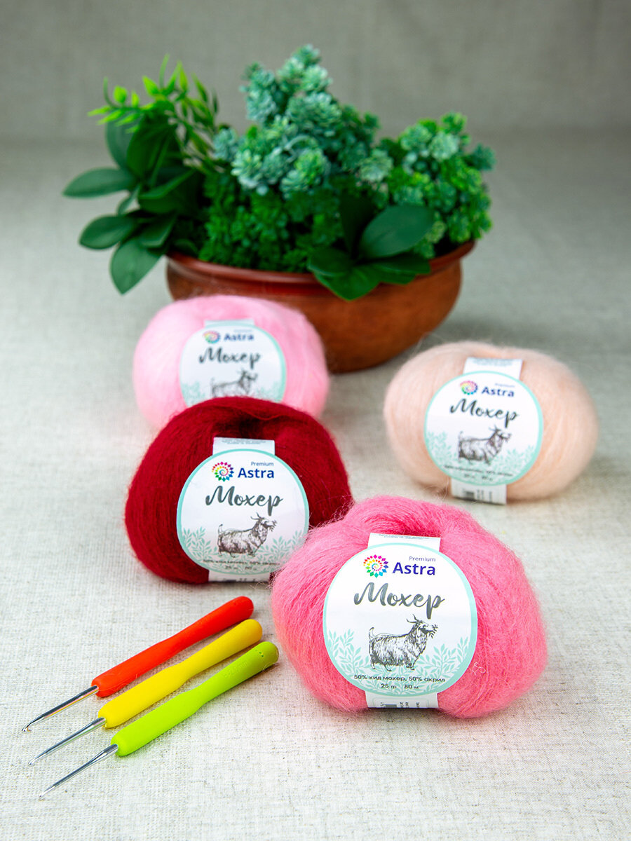 Пряжа Astra Premium "Мохер", 25 гр 190 м, 50% кид мохер, 50% акрил, 32 розовый, 4 шт