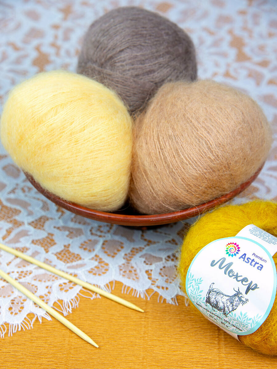 Пряжа Astra Premium "Mohair", 25 г, 190 м, 50% кид мохер, 50% акрил, цвет 23 Горчичный, 4 мотка
