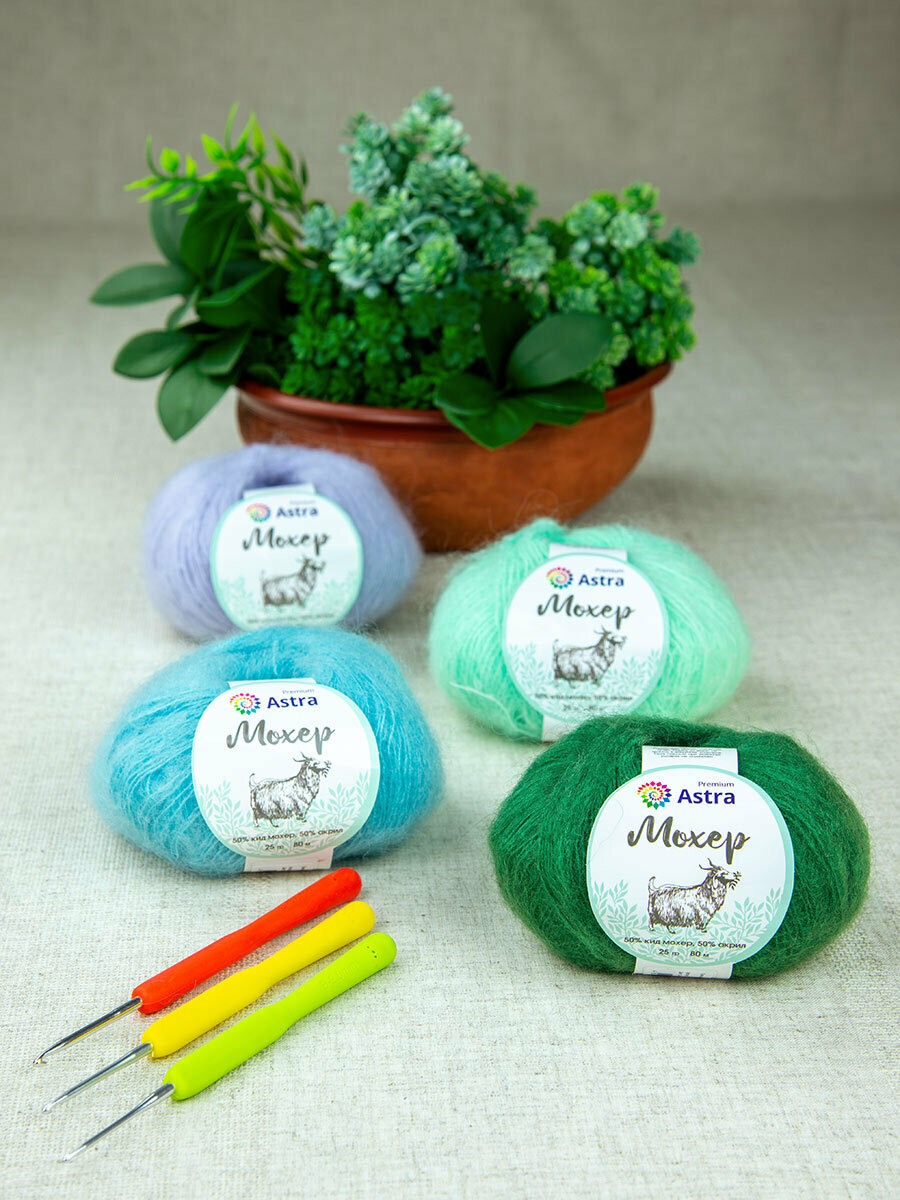 Пряжа Astra Premium "Мохер", 25 гр 190 м, 50% кид мохер, 50% акрил, 05 мятный, 4 шт