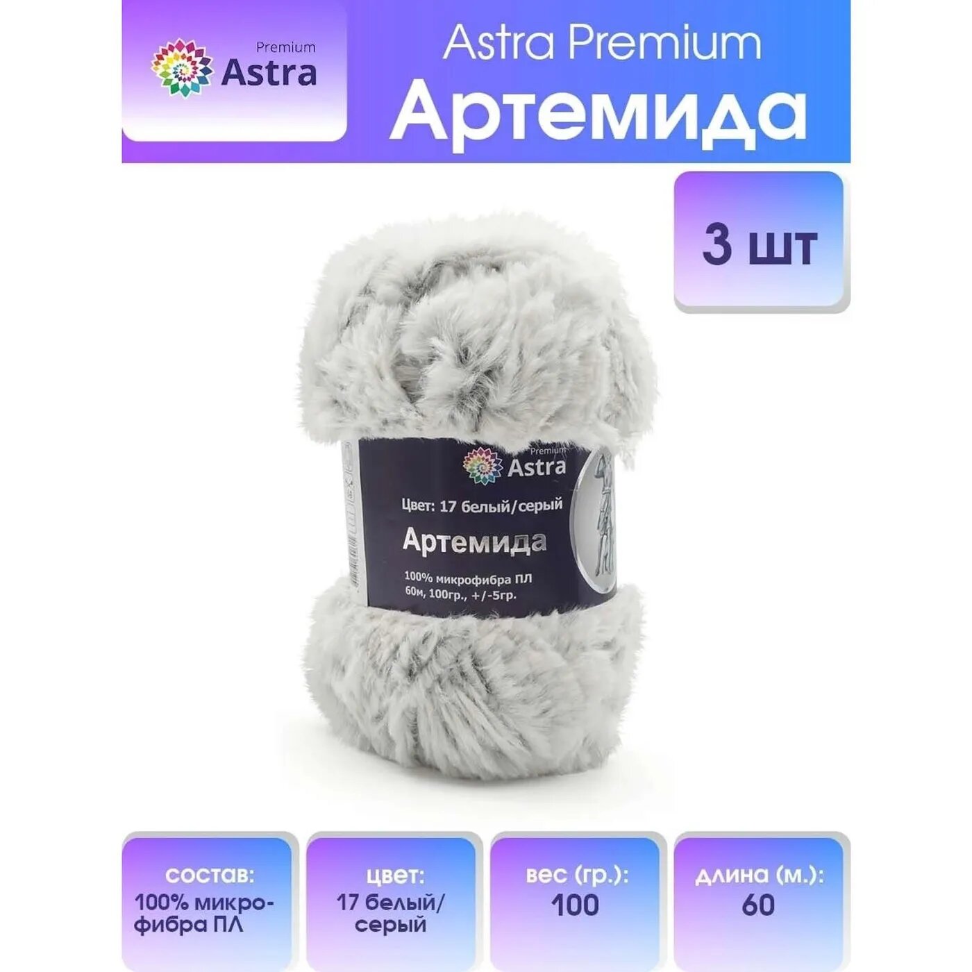 Купить Пряжа для вязания Astra Premium 'Артемида', 100г, 60м (100% микрофибра ПЛ) (17 белый/серый), 3 мотка