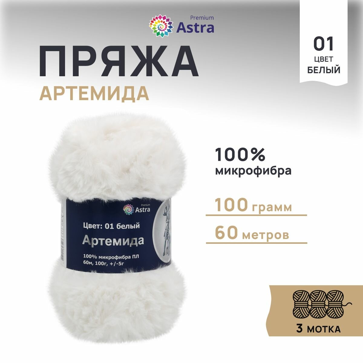 Купить Пряжа для вязания Astra Premium 'Артемида', 100г, 60м (100% микрофибра ПЛ) (01 белый), 3 мотка
