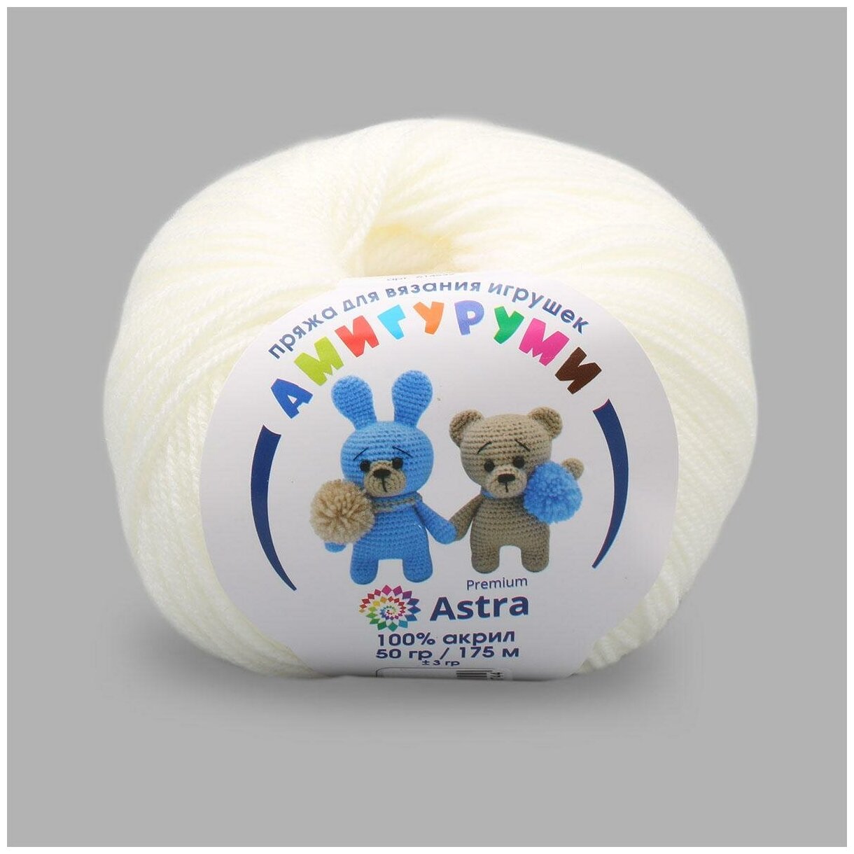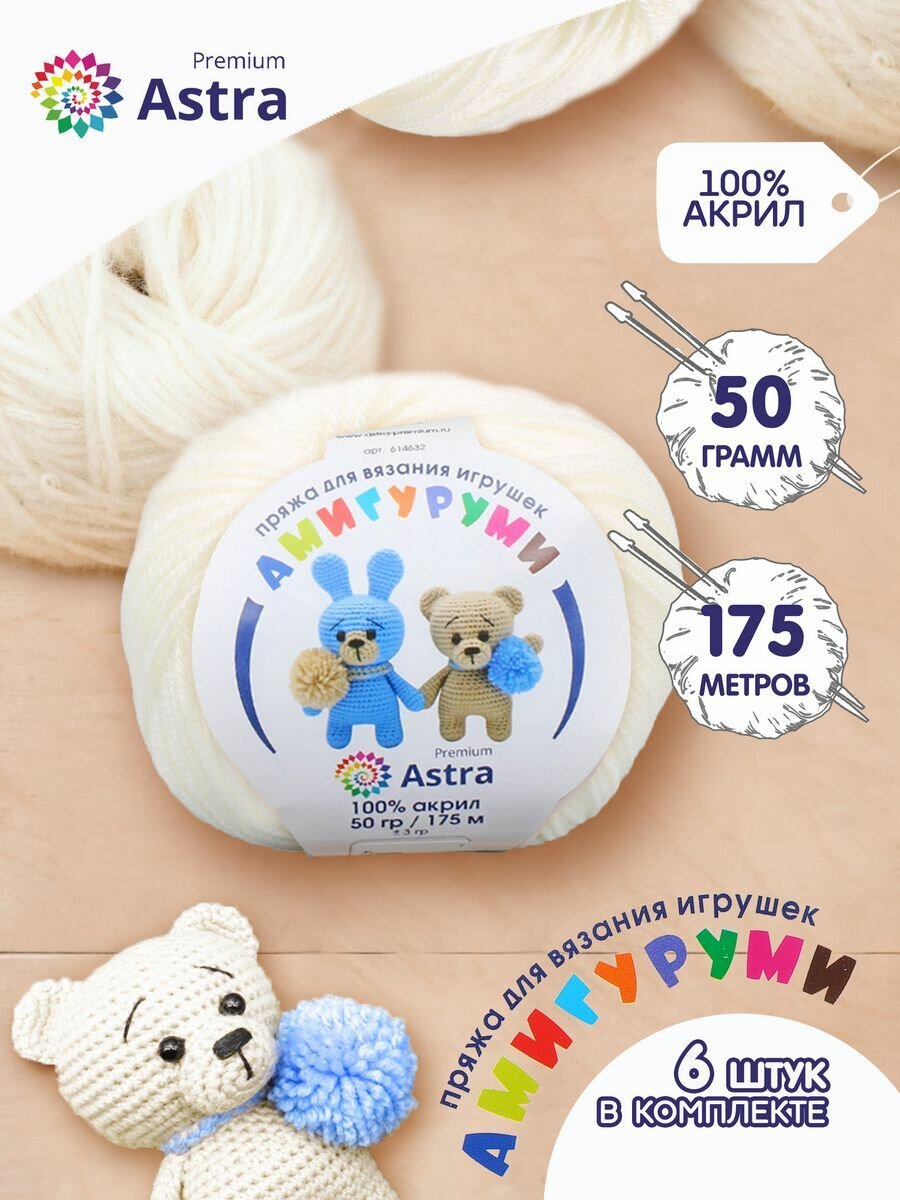 Пряжа для вязания Astra Premium 'Амигуруми' 50г, 175м (100% акрил) (002 отбелка), 6 мотков