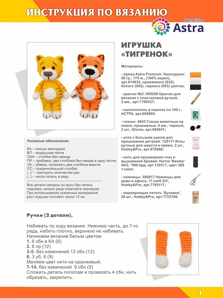 Пряжа Astra Premium "Амигуруми", 50 гр 175 м, 100% акрил, 035 оранжевый, 6 шт